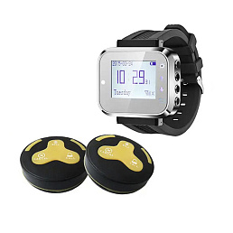 Настольная кнопка вызова официанта YK500-3N в белом пластиковом корпусе. Три кнопки вызова. Радиус приёма сигнала — не менее 100 метров. Базовая частота 433,92 МГц. Размер: 58×58×21 мм.