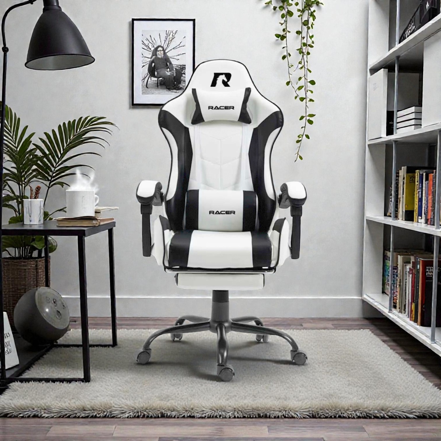 Игровое кресло Racer Casper, черно - белый, 90 кг