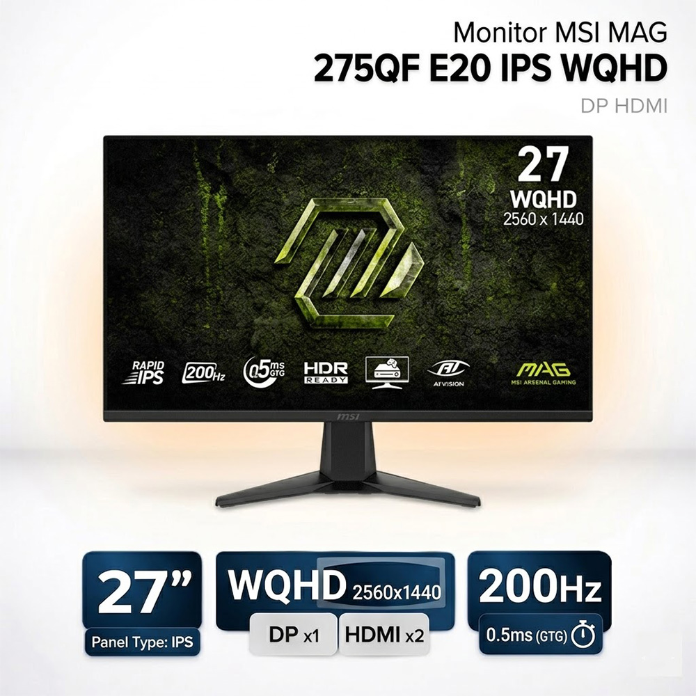 Монитор MSI MAG 275QF E20 IPS WQHD, 2560x1440 200hz, 0.5ms, DPx1, HDMIx2