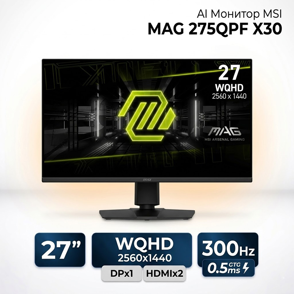 Монитор MSI MAG 275QPF X30 IPS WQHD, 2560x1440 2K, 300hz, 0.5ms, DPx1, HDMIx2, AI