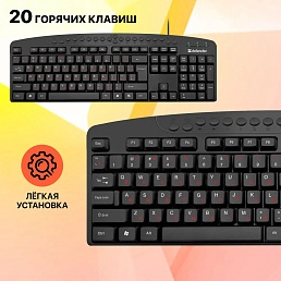 Компьютерная клавиатура Defender черная, полноразмерная, оптимально подойдет для офиса или организаций благодаря прочной усиленной конструкции.