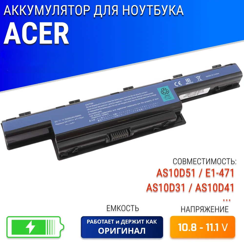 Аккумулятор для ноутбука ACER (E1-471-T-3S2P) E1-471 / E1-431/ 5745 10.8V 4400MAH (AS10D31/ AS10D41)