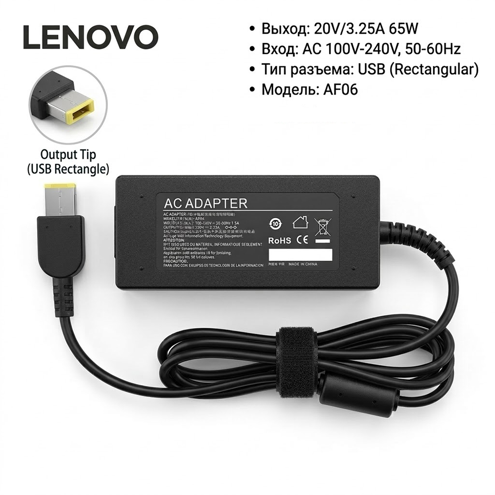 Зарядное устройство для ноутбука Lenovo 20V 3.25A USB 65W