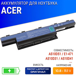Аккумулятор для ноутбука ACER (E1-471-T-3S2P) E1-471 / E1-431/ 5745 10.8V 4400MAH (AS10D31/ AS10D41)